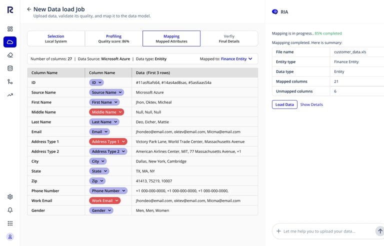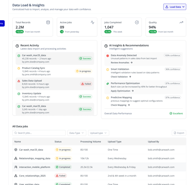 I designed a pattern-matching engine that analyzes file headers and data types (e.g., recognizing specific regex patterns for "Phone Number" or "SKU").